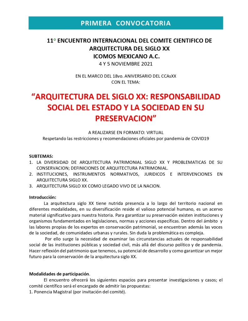 Convocatoria: 11° ENCUENTRO DEL COMITE CIENTIFICO DE ARQUITECTURA DEL SIGLO XX DEL ICOMOS MEXICANO A.C. Publicado porAMEC31 agosto, 202131 agosto, 2021Publicado en Sin categoría Me gusta Cargando... Relacionado